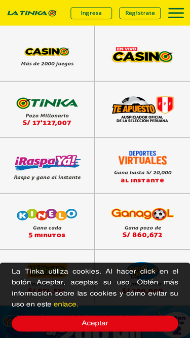 61%La Tinka es la compañía líder en juegos de loterías y apuestas deportivas en Perú. La Tinka, Ganagol, Kábala, Gana Diario, Kinelo y Te Apuesto.