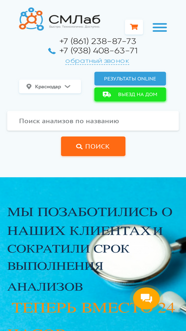 74%нужно сдать анализы в краснодаре? smlab - это сеть новейших центров лабораторной диагностики, организованных по последнему слову техники. в краснодаре имеется своя лаборатория!