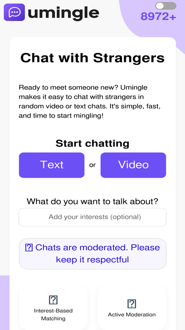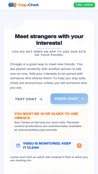 Join the No.1 Omegle. Safe & free random video chat for 2026. Rated 4.9 stars by 928K users. Connect instantly with one-click social login.