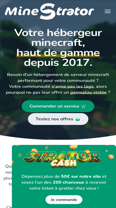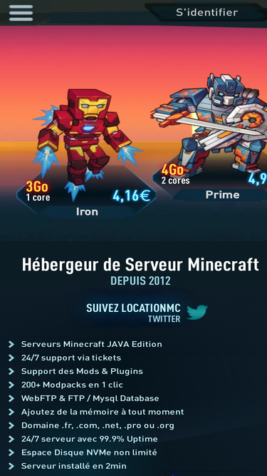 100%hébergeur minecraft depuis 2012 - location de serveur minecraft gratuit et à partir de 4,99€, proposant le meilleur rapport qualité/prix