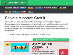 66%Serveur Minecraft gratuit. Serveur crackés et liste des meilleurs serveurs Minecraft français. PvP, crack, skyblock, anarchie, prison, créatif, faction... classés par votes.