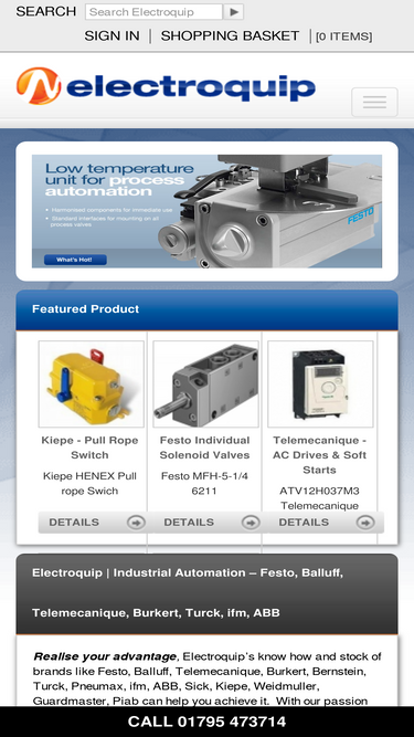 100%festo, balluff, telemecanique, burkert, turck, pneumax, ifm and abb ex stock at electroquip, the engineers of productivity. same day despatch and competitive prices online or at our store.