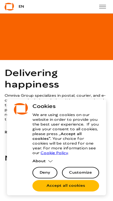 100%Omniva is an international logistics company operating worldwide and the biggest parcel machine service provider in the Baltic region. Welcome!