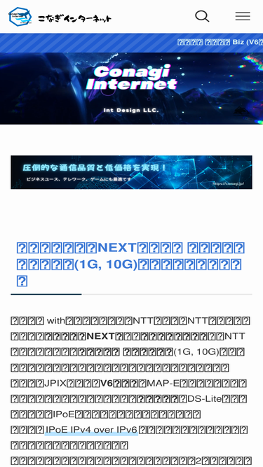 74%こなぎインターネットは、IPoE IPv4 over IPv6対応 プロバイダーです。
