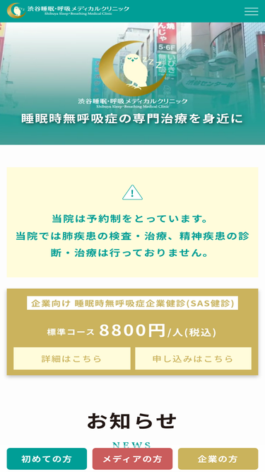 睡眠総合ケアクリニック代々木では、睡眠障害の中でもっとも身体的な影響の大きい睡眠時無呼吸症候群、不眠症、過眠症(夜十分眠っているのに昼間眠気が強く、居眠りをしてしまうもの)、概日リズム障害、睡眠相後退症候群、夜間睡眠中の異常行動や異常運動、レストレスレッグ(むずむず脚症候群)小児睡眠障害などをはじめとする各種睡眠障害に対応できる総合睡眠診療施設です。