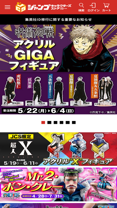 85%集英社が運営するショッピングサイト「ジャンプキャラクターズストア」。「週刊少年ジャンプ」の人気漫画キャラクターグッズはもちろん、ここでしか買えない限定グッズまで。豊富な品ぞろえの商品からお買いものをお楽しみください。