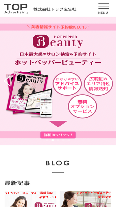 100%ホットペッパービューティー掲載料金、リジョブ掲載料金、その他美容室・美容院の集客、新規開業をお手伝いする情報満載|トップ広告社のホームページです。
