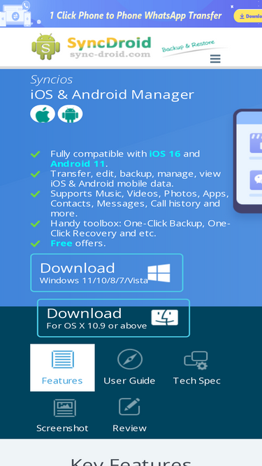 100%syncios ios & android manager is a free software which can backup music, videos, photos, apps, ebooks, contacts, messages and more from ios and android devices to computer and manage mobile devices data.