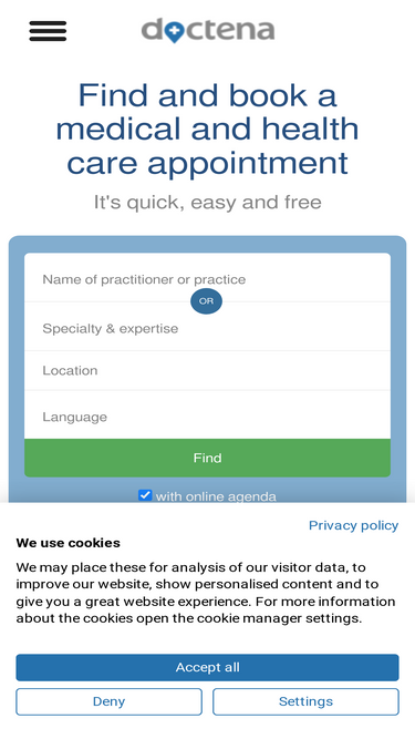 98%Easy, quick and for free: Find the health professional in Switzerland best suited to your needs on Doctena. Book your appointment in just a few clicks.