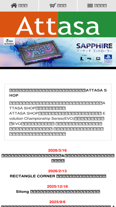 85%アタッサショップでは、世界最大の格闘ゲームトーナメント evolution championship series(evo)会場で販売されていたevo公式グッズ、三和電子 ジョイスティックレバー&ボール、ボタン、マッドキャッツ アケコン、アケコンパーツ、アパレル商品などを取り扱っています。
