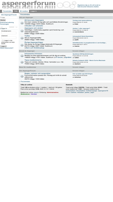 100%platsen på nätet för oss med ast (autismspektrumtillstånd) och anhöriga. drivs av autister. träffa andra med liknande erfarenheter och diskutera allt relaterat och orelaterat till diagnosen. många här har både ast/aspergers och adhd/add. de avdelningar som rör ast är öppna för alla. (registrerade medlemmar får tillgång till den stora avdelningen om allting.)