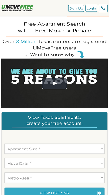89%UMoveFree is Texas' largest free apartment locating service. Our experts help you find the ideal home from 10,000+ apartments and earn moving assistance or a Cash Back Rebate.