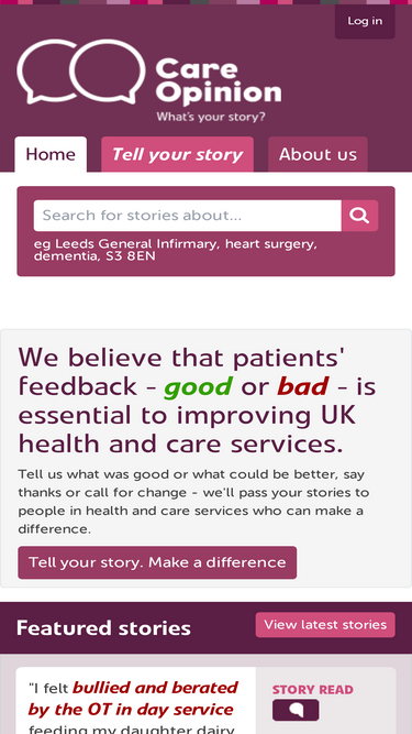 73%The UK's independent non-profit feedback platform for health and social care. Share your story - help make our services better.