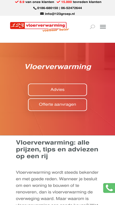 95%Contactgegevens 123Vloerverwarming.nl ✓ Scherpste prijs ✓ Hoogste kwaliteit ✓ Vijf jaar systeemgarantie en helder advies!