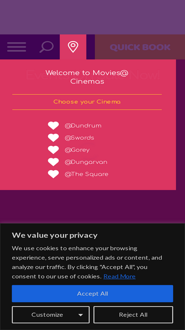 85%irish owned luxury multiplex cinemas located in dundrum, swords, gorey and dungarvan, bringing you the latest blockbusters movies and live cultural events.