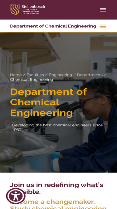 58%Welcome to the Department of Chemical Engineering at Stellenbosch University. Developing the best chemical engineers since 1969.