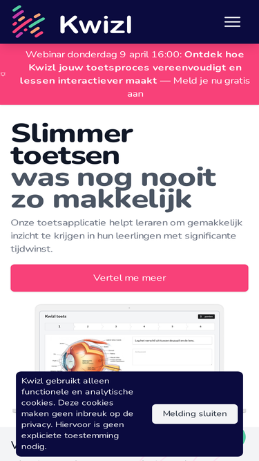 89%Onze gratis toetsapplicatie helpt leraren om gemakkelijk inzicht te krijgen in hun leerlingen met significante tijdwinst.