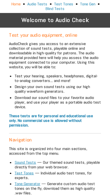 80%tests your audio equipment, speakers, room acoustics and hearing. audio signals and test tones playable online. high resolution sound test files available for free download.