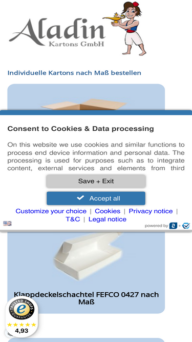 94%Um Ihr Widerrufsrecht auszuüben, müssen Sie uns (Aladin-Kartons GmbH, Im Mönchgraben 33, 75397 Simmozheim, Telefonnr.: +49-7033-7089670,
