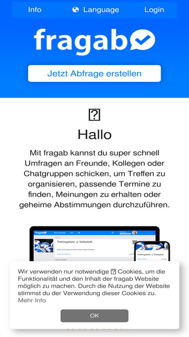 75%Jetzt die kostenlose fragab App für iOS und Android herunterladen, um noch schneller Umfragen zu erstellen und ohne Passwort abzustimmen.