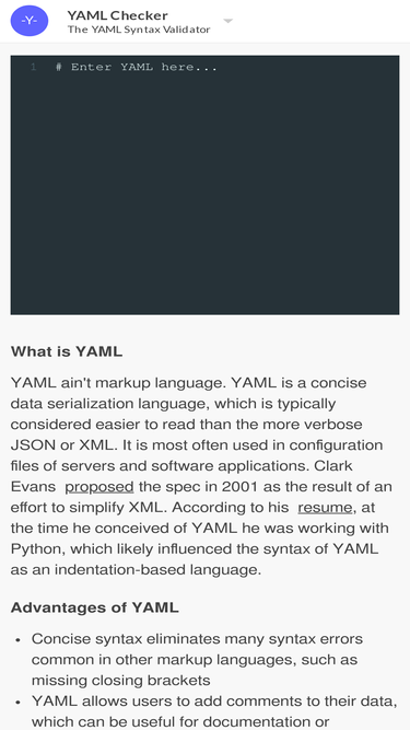 100%A fast and easy-to-use YAML syntax validator for developers, devops, or anyone else using YAML syntax
