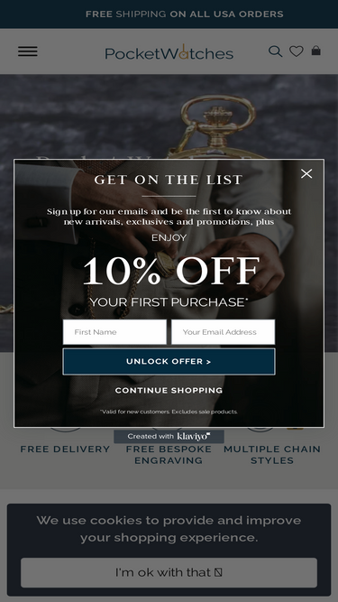 81%MovementHand Wound Mechanical 17 JewelCase StyleOpen Face Pocket WatchCase MaterialGold Tone Polished MetalDial ColorWhiteCase Diameter1.85 Inches(47mm)Case Depth0.39 Inches (10mm)Dial StyleSkeletonNumeral TypeRomanWinder Position12 O'clockFeaturesVisible Escapement WindowChain TypeMatching Chain Of Your ChoiceThe Eltham An elegant open faced pocket watch with gold plated casing. The classic rail road design has a unique skeleton display and heartbeat window showing the 17 jewel mechanical movement. The dial has a chapter ring with roman numeral markings.Personalization OptionsWe can offer you engraving on outer back case of your pocket watch.Presentation & Packaging A classy black box with a velvet pouch and Greenwich gift bag. International Guarantee Comes with 1 Year Official Manufacturers Guarantee.