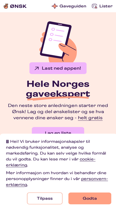 92%Dine ønskelister på ett sted: Ønsk lar deg lage og dele ønskelister for alle anledninger.