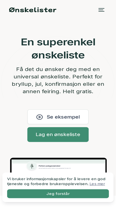 82%Lag en ønskeliste for ditt bryllup, jul, konfirmasjon eller annen feiring. Legg til ønsker fra over 10.000+ butikker. Alt helt gratis.