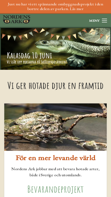 nordens ark är en park som arbetar för att ge utrotningshotade djur en framtid. vi bedriver naturvård, uppfödning, forskning och utbildning samt arbetar med att sprida kunskap om biologisk mångfald.