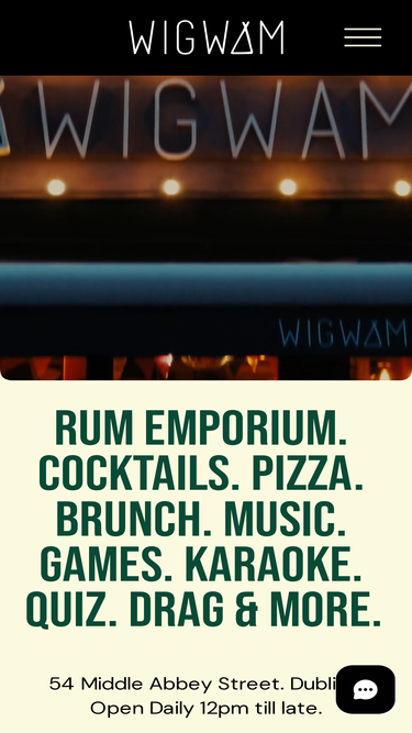 76%BOOK NOW Opening Hours Monday - Sunday | 12pm - late 54 Middle Abbey St, Dublin 1 Phone: (01) 873 4020 CLICK & COLLECT We're now on DELIVEROO! Pizza | Rum Bar | Brunch | Karaoke | Ping Pong | Event Space | Gigs | Restaurant | Terrace | Drag Brunch OUR WEEKLY SCHEDULE