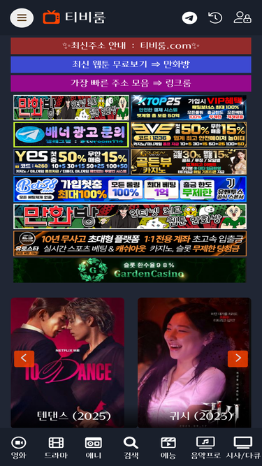 85%무료영화 사이트 티비룸(tvroom)에서 최신인기 영화/드라마/예능프로/애니/시사,다큐 를 포함한 다양한 장르의 무료 스트리밍 콘텐츠를 즐기세요. HD 화질로 제공되는 수많은 비디오 중에서 원하는 내용을 검색하고 무료로 시청하세요. 언제 어디서나 회원가입 없이 무료감상을 즐겨보세요.