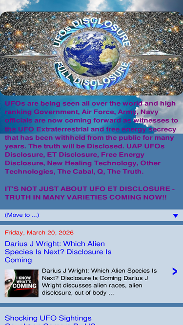 The blog UFOs-Disclosure is all about UFOs, UFO ET Alien Disclosure. Truth in many varieties.