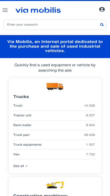 88%Via-Mobilis.com - Website specialized in buying and selling used industrial vehicles online: 240 000 trucks, tractor units, semitrailers, diggers, cargo vans and other ads