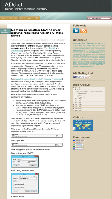 93%Lately I’ve been wondering about the impact of the following setting: Domain controller: LDAP server signing requirements. T he documentatio...