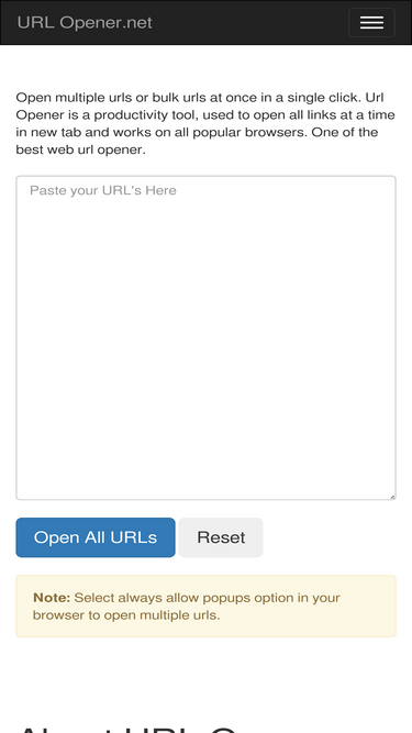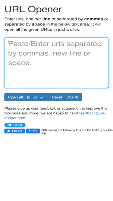 100%Free web tool to open multiple URLs or Multiple Links at the same time through the web browser in multiple tabs simultaneously.