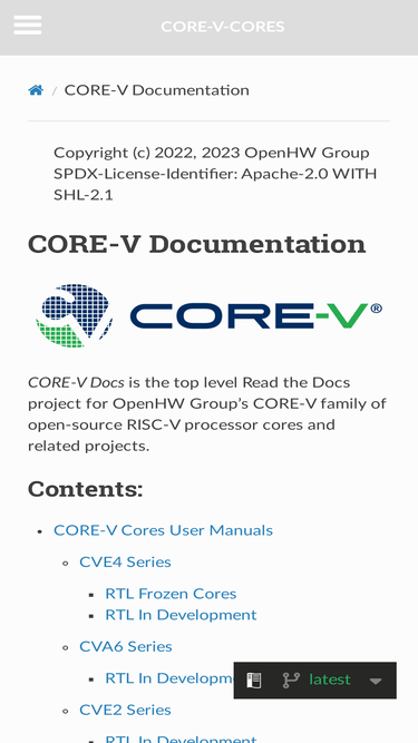 100%continuous core-v documentation development on read the docs.