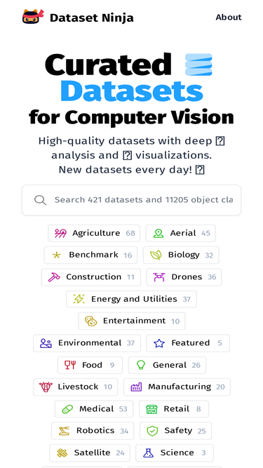 90%Catalog of high-quality images, videos and 3D point clouds with statistics and visualizations