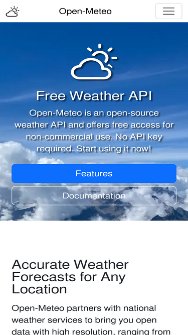 90%open-source ☀️️️️️️️️️️️️️️️️️️️️️️️️️️️️️ weather api with free access for non-commercial use. no api key required ✅. accurate weather forecasts for any location. open-meteo provides high-resolution open data ranging from 1 to 11 kilometers from national weather services. with a user-friendly json api, integrating weather data has never been easier. experience the precision and convenience of open-meteo's forecast api for reliable and comprehensive weather information worldwide.