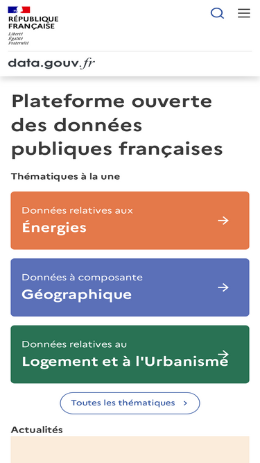 94%Plateforme ouverte des données publiques françaises : téléchargez, partagez et réutilisez les données ouvertes de l'État et des collectivités