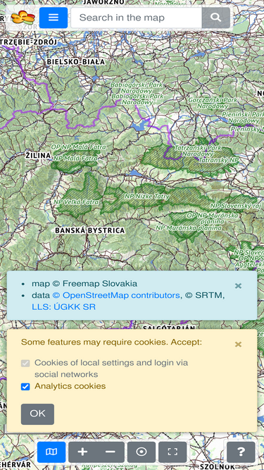 80%Detailed cycling, hiking, cross-country skiing and equestrian map of Central Europe (Slovakia, the Czech Republic, Hungary, Croatia, Slovenia, Romania, Bulgaria, Bosnia and Herzegovina, Austria, Switzerland in northern Italy and Carpathian Ruthenia). The map contains marked hiking, biking, cross-country and riding trails. It is based on the OpenStreetMap database and is therefore constantly updated. Various backgrounds such as Strava heatmap, NLC forest roads, aerial imagery, public transportation, wikipedia, photos. Functions such as search (by name or POI by category), route planning (walking, cycling, pram, trolley, ...), map annotation (drawing, points / markers on the map), measurement (distance, height, area, position), GPX records viewer, own maps, live tracking, export to or GeoJSON, PDF map export for printing. Insert a map into your own page. An alternative to maps such as hiking.sk, mapy.com or maps.google.com.
