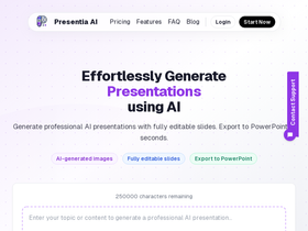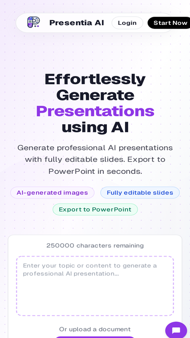 90%Generate a PowerPoint Presentation on any topic. Just type in a few words and our AI will generate it for you.