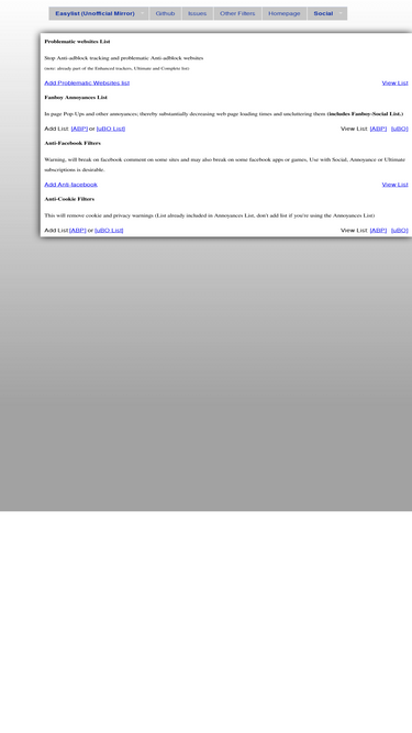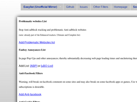 86%tinylist est une liste de filtres courte et efficace pour l'extension adblock plus.