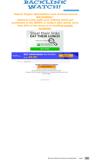 95%today search engine optimization greatly depends on quality of inbound links to increase your serp rank and ultimately increase affiliate or ppc adsense,ypn revenue. backlink watch greatly helps you to know every bit about your inbound links. it includes anchor text, pagerank, quality of backlinks by finding total outbound links any restriction of nofollow tag.