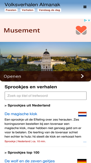 100%wereld feesten almanak - wereldwijd worden er duizenden feesten per jaar gevierd. ontdek nieuwe feestdagen, vieringen, gedenkdagen, rituelen en gebruiken van verschillende landen en culturen. elke dag een feestdag, alle dagen feest! - beleven.org - volksverhalen almanak - meer dan 2100 volksverhalen uit verschillende landen en culturen. begin een reis door de mooiste verhalen, sprookjes, mythen, sagen en legenden uit de rijke verteltraditie van de wereld. zoek, lees, geniet en vertel voort! - beleven.org - vandaag de dag - wat gebeurde er vandaag op 29 december in de geschiedenis? 'vandaag de dag' is een dagelijkse rubriek met een keuze van gebeurtenissen uit het verleden en sterfdagen en geboortedagen van bekende personen.