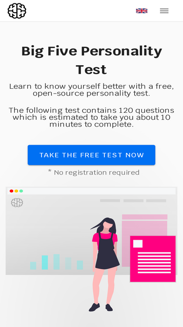 97%Take a free, open-source Big Five personality test. Learn to know your personality traits and compare yourself with your partner, colleagues, friends or family.