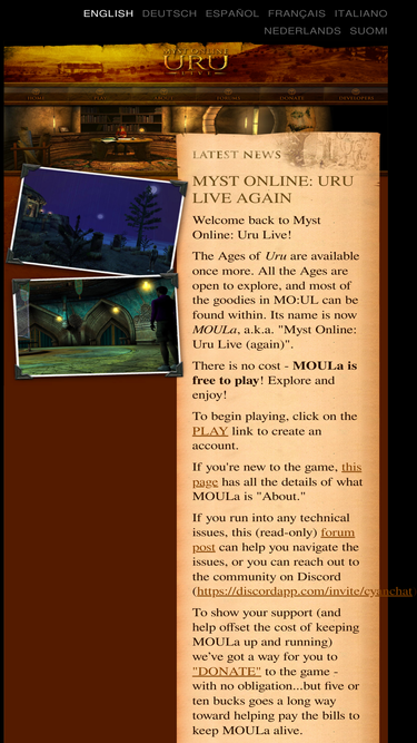 100%myst online: uru live is an open-sourced massively multiplayer online adventure game.
