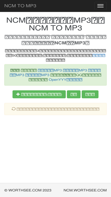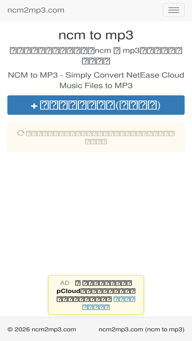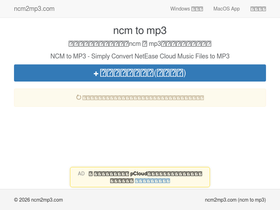 83%网易云ncm转mp3 - ncm to mp3 是一个在线工具,用于将网易云音乐的.ncm格式文件批量转换为.mp3格式文件。支持ncm转mp3、ncm转flac等多种格式转换。无需上传文件,即可快速转换。
