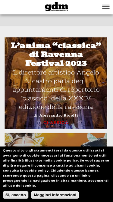85%Il Giornale della Musica è il portale di riferimento per la musica classica, lirica e contemporanea. Notizie, recensioni, interviste, video e audio streaming.