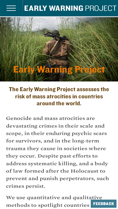 82%The Early Warning Project’s Statistical Risk Assessment uses publicly available data and statistical modeling to produce a list of countries ranked by their estimated risk of experiencing a new...