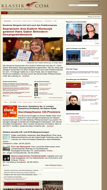 88%klassik-portal mit umfangreichen informationen zur klassischen musik. aktuelle nachrichten, tausende von cd-rezensionen und kritiken zu mehr als 100 plattenlabels, konzertkritiken, hunderte von biographien zu interpreten und komponisten bis hin zu privaten kleinanzeigen.